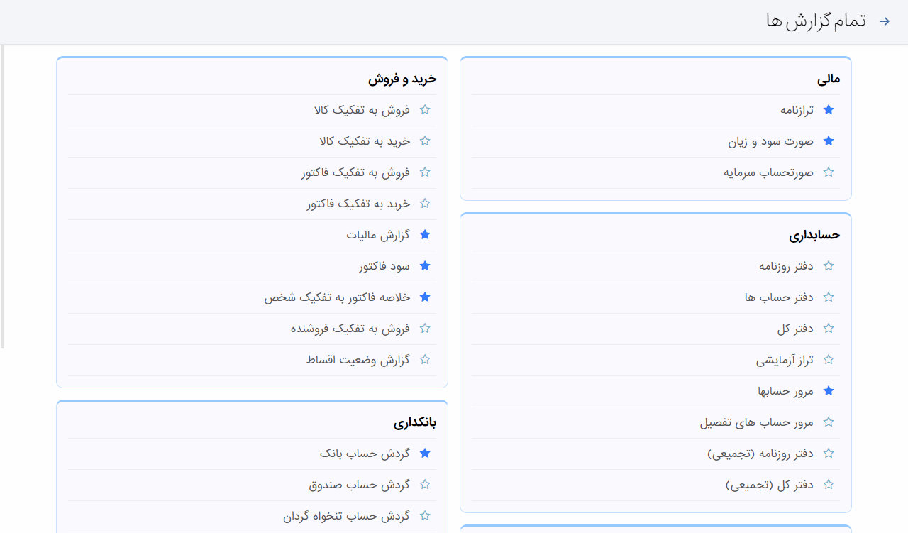 - تعیین بازه زمانی برای تمامی گزارش ها از جمله گزارش ترازنامه