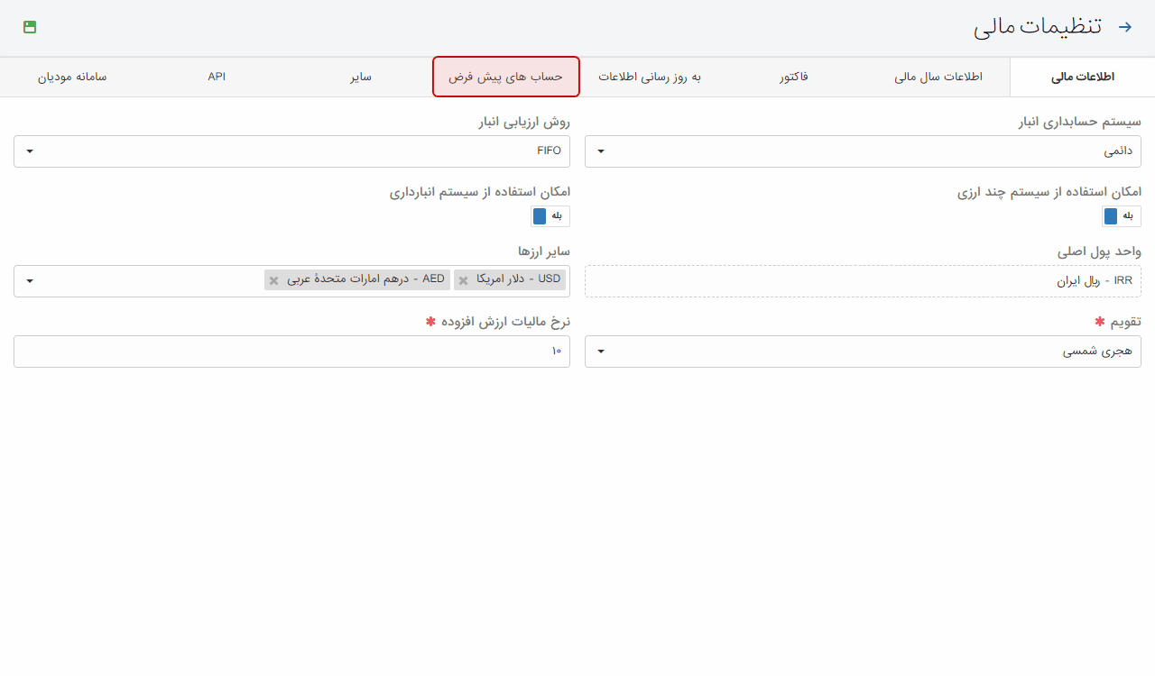 - برطرف شدن مشکل ذخیره نرخ مالیات بر ارزش افزوده در تنظیمات مالی کسب و کار