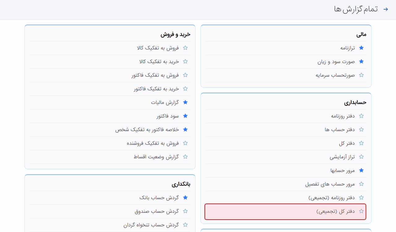 - امکان صدور فایل دفتر روزنامه الکترونیکی از گزارش دفتر کل تجمیعی