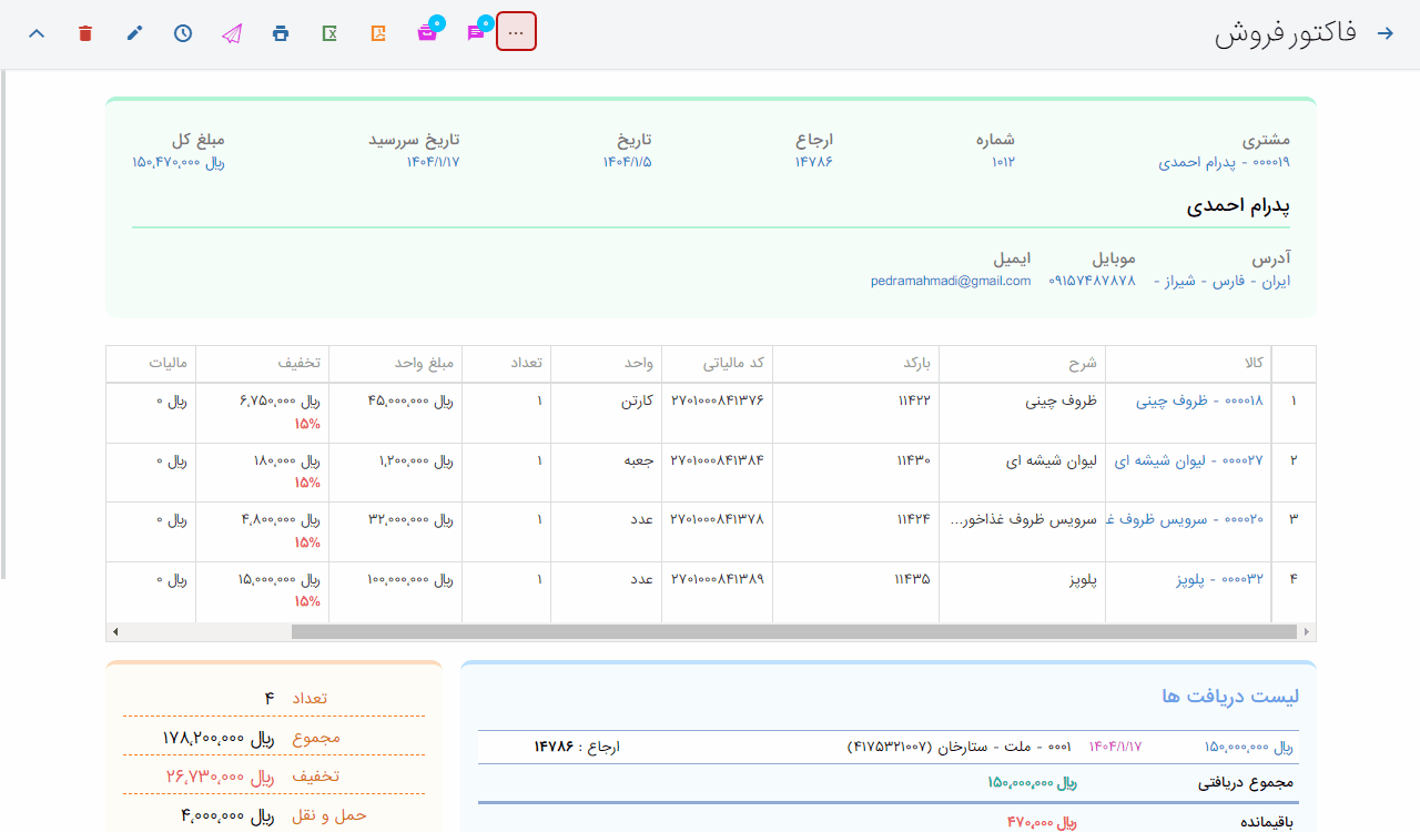 - امکان ارسال مستقیم فاکتور به سامانه مودیان از صفحه نمایش فاکتور