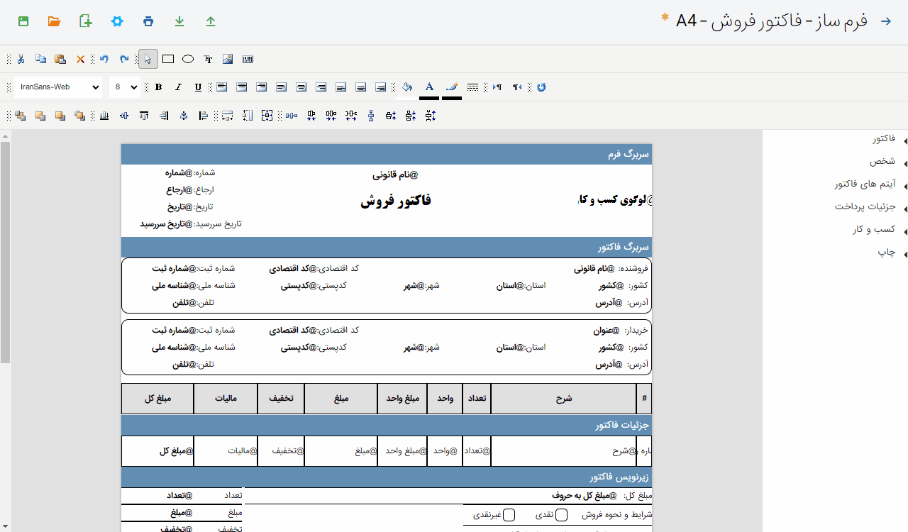 - تغییر سربرگ فاکتور در هنگام چاپ براساس فرمت اداره دارایی