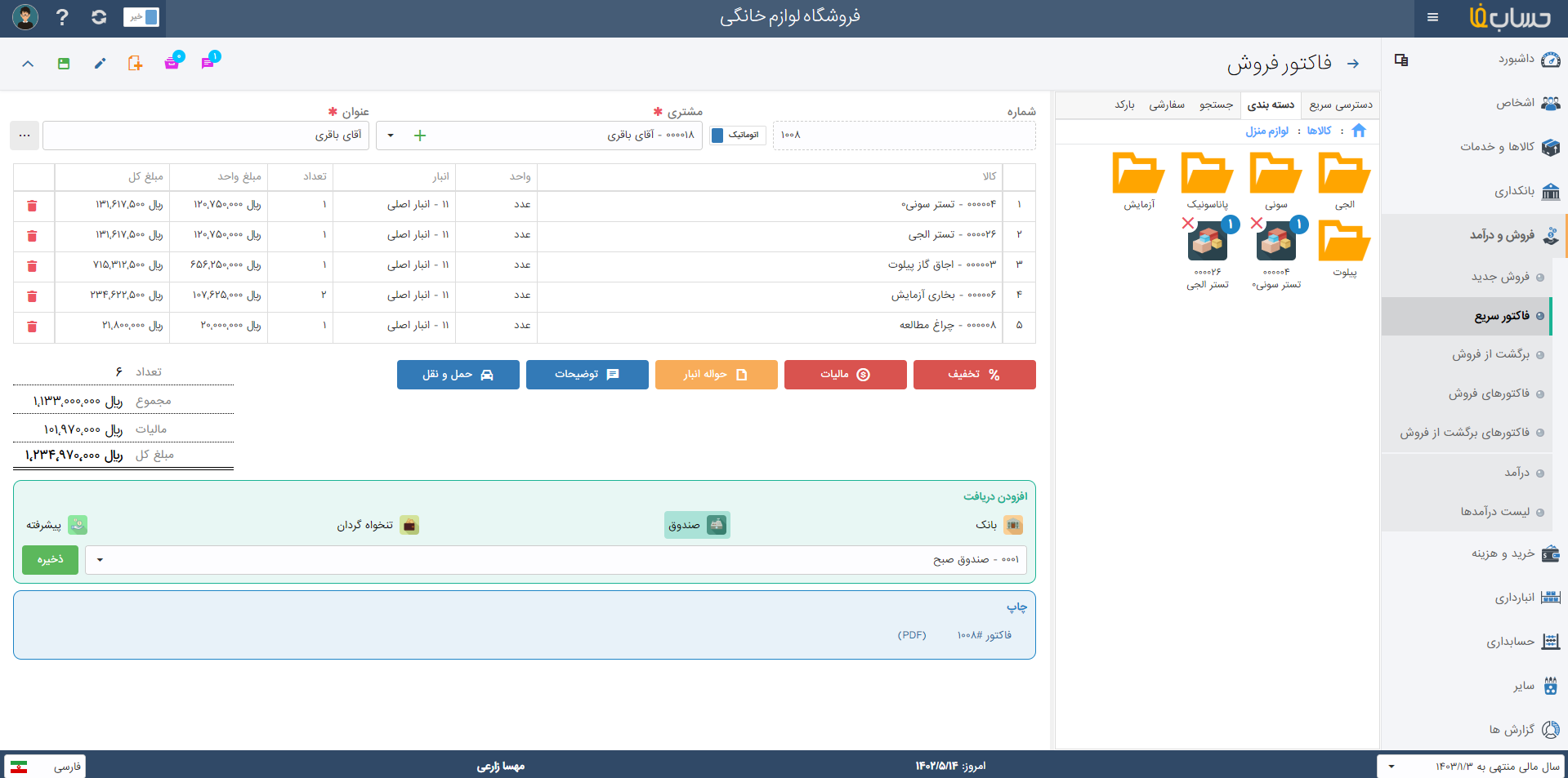 - ثبت سریع فاکتور با استفاده از فاکتور سریع