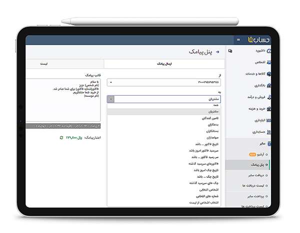 با استفاده از این ویژگی میتوانید کارت حساب یا فاکتورهای مشتریان را به صورت اتوماتیک یا دستی برای آنها ارسال کنید.